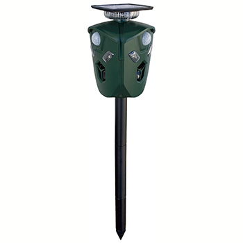 Holder effektivt større dyr som hunde, katte, mår, ræve, egern og rådyr på afstand. Enheden udsender ultralyd i frekvensområdet 10,5–60 kHz, som virker afskrækkende uden brug af kemi.