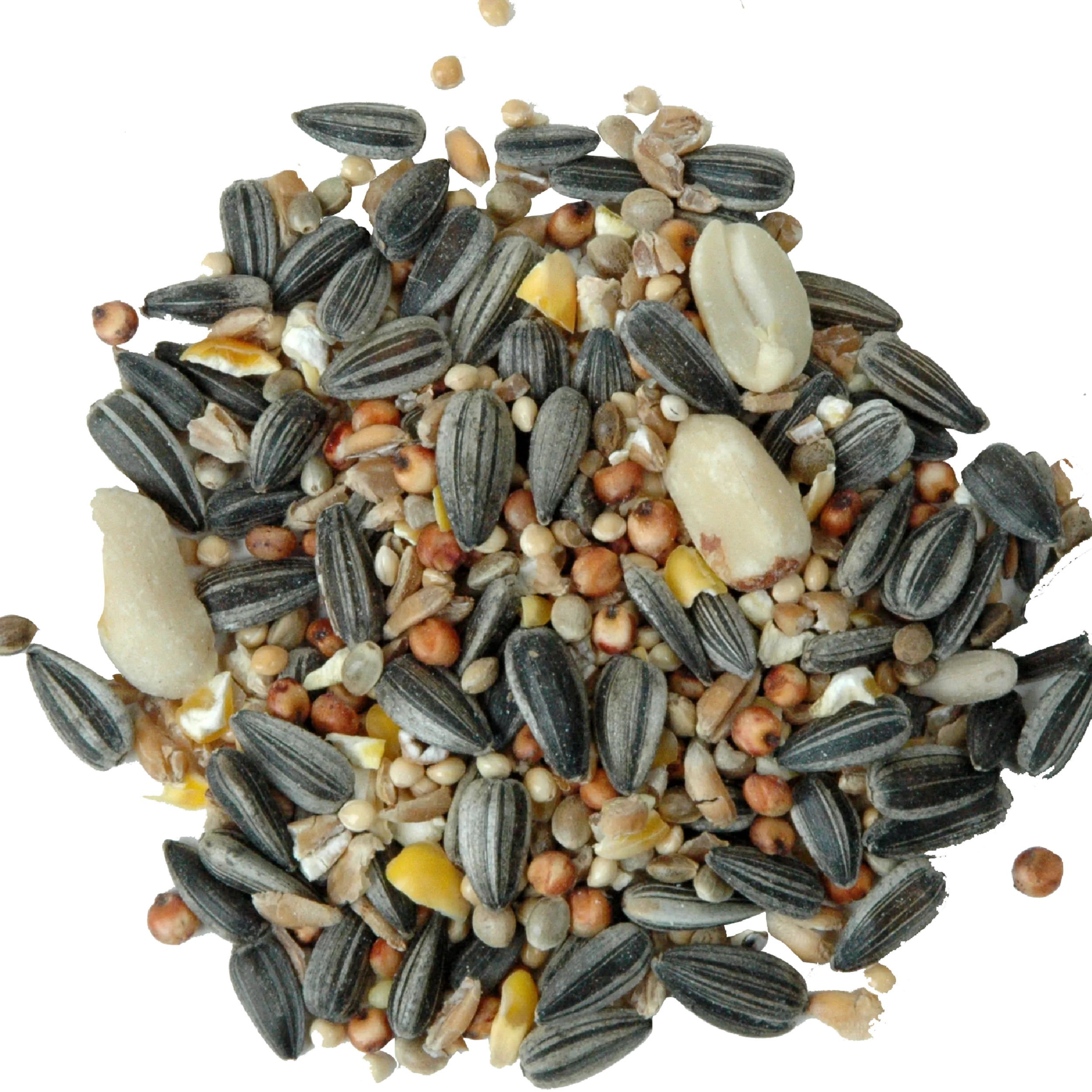 Indhold: Solsikkefrø, sorghum, korn, hvede, gul hirse, peanuts, hampefrø.