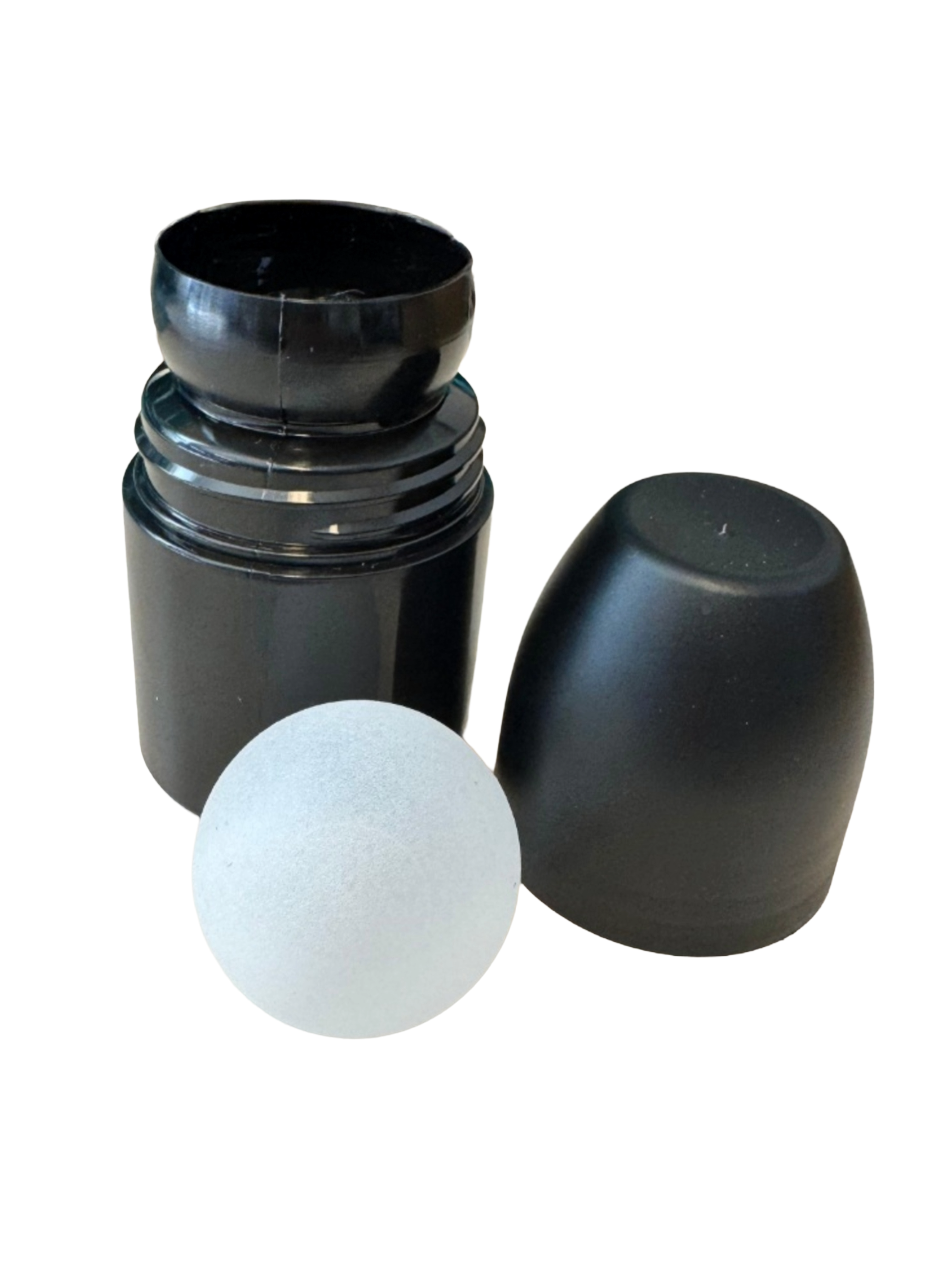 Praktisk roll-on beholder til nem og kontrolleret påføring af flydende plejemidler.