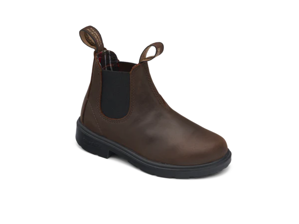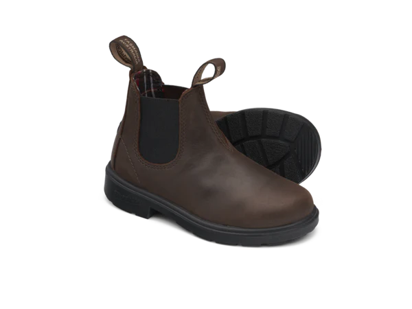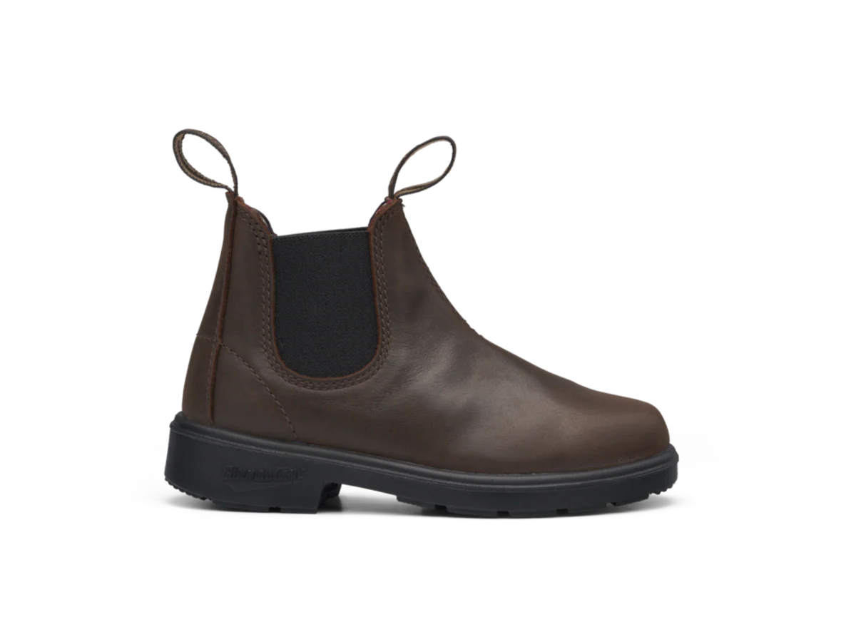 (inkl. moms)Giv dit barn friheden til at gå på opdagelse – i komfort, stil og kvalitet. Blundstone 1468 i den flotte antikbrune farve kombinerer australsk håndværk med praktisk design, der holder til alt fra skolegården til skovturen.